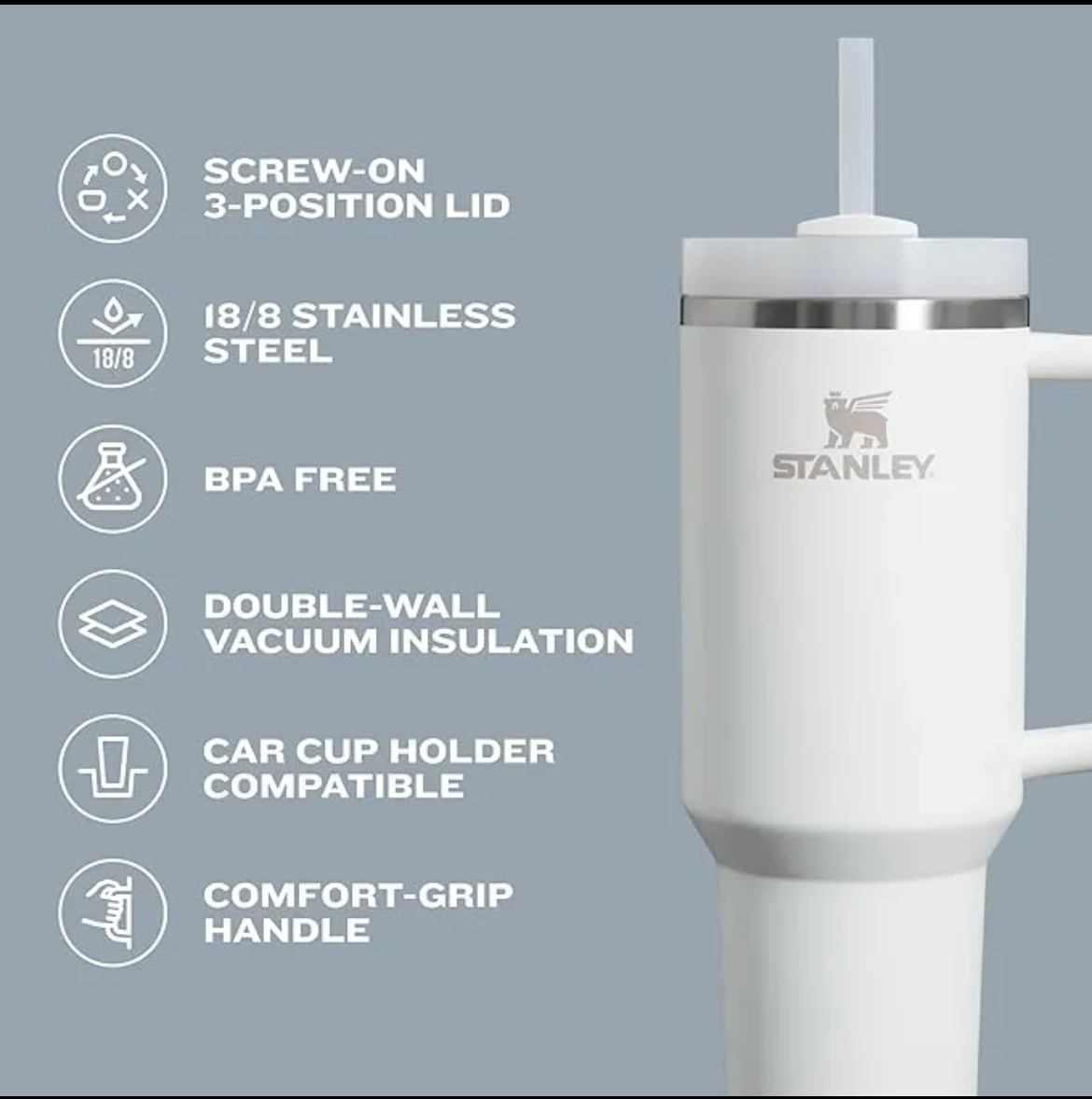 40 Oz Stanley Flow State Quencher H2.O Tumbler with Straw – Stainless Steel Thermos Flask for Hot & Cold