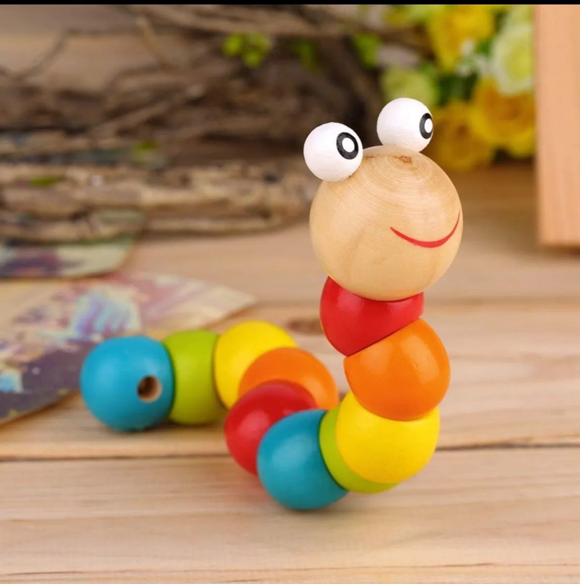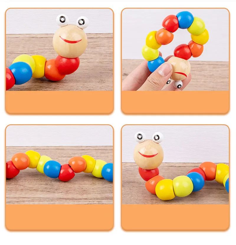 Colorful Twisted Caterpillar – Montessori Wooden Educational Toy for Kids