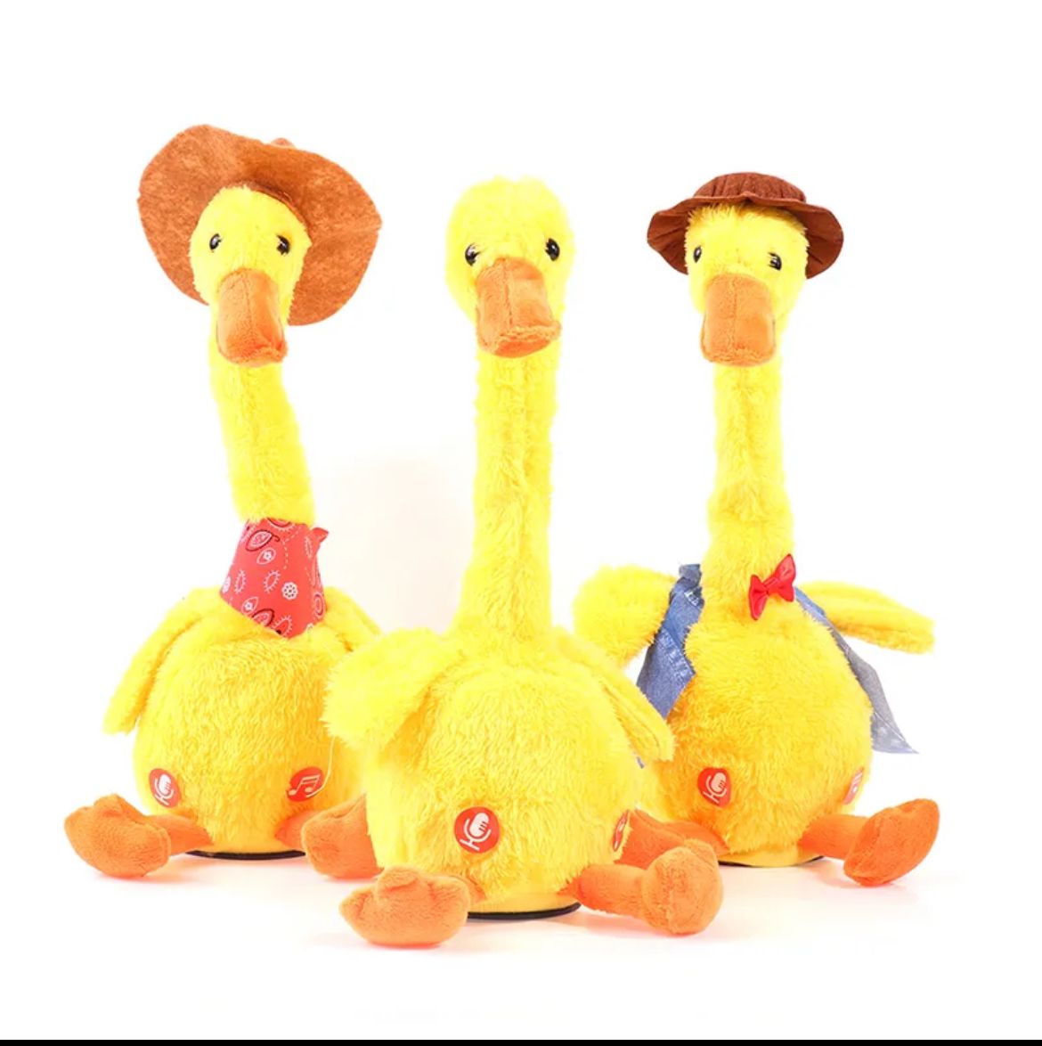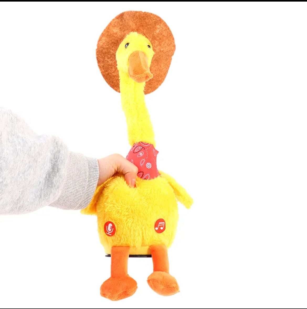 “Meet your newest laugh-inducing playmate: the Dancing Duck Plush! Sing, record, and play with this USB-rechargeable duck that dances, flaps, and lights up—then quacks your words back in the funniest way. Plush, safe, and endlessly entertaining!”