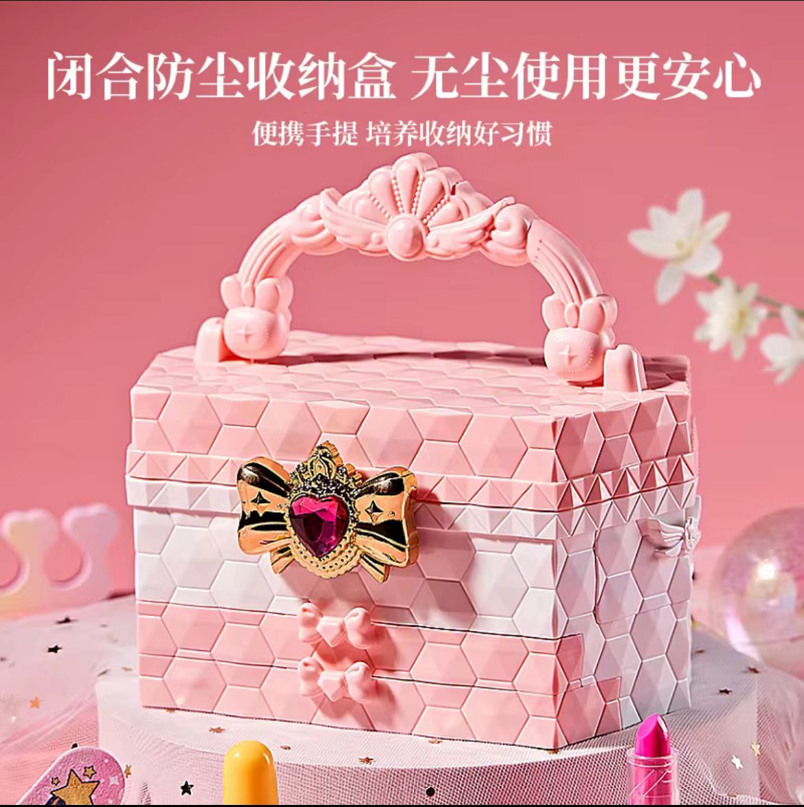 The elegant dressing box design not only keeps everything organized but also adds a touch of glamour to playtime. Perfect for pretend play, dress-up, and early creative expression, this makeup kit helps develop fine motor skills, imagination, and confidence in a safe and playful way.