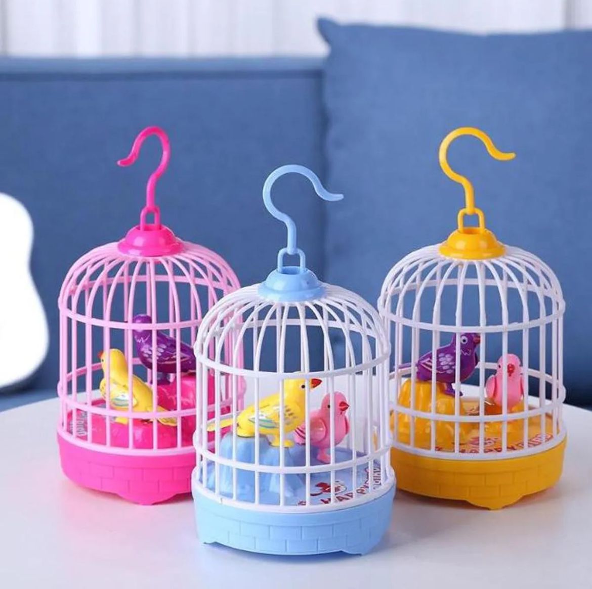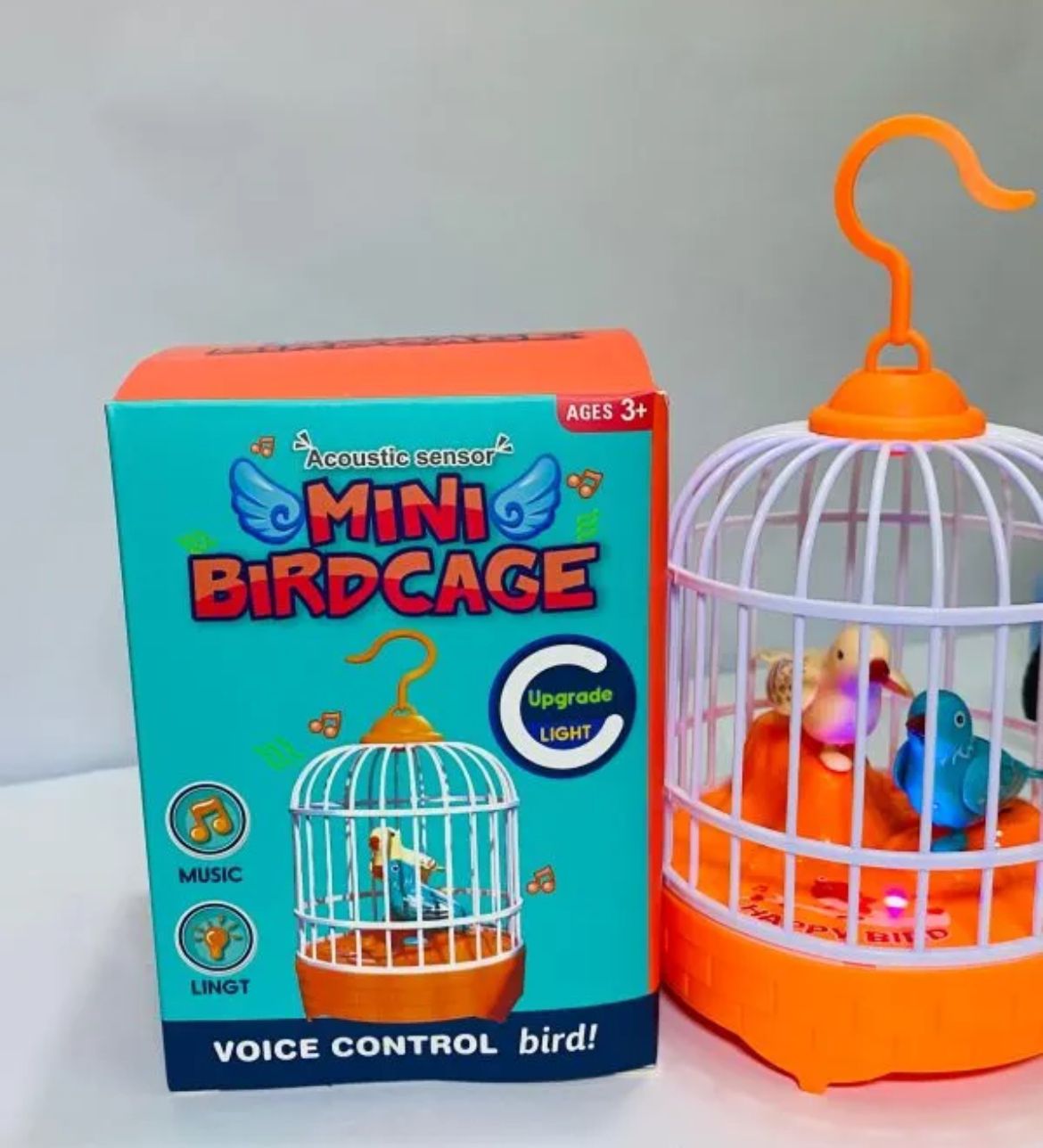 Mini Bird Cage Toy – Singing, Chirping & Moving Bird with Lights and Sound Sensor
