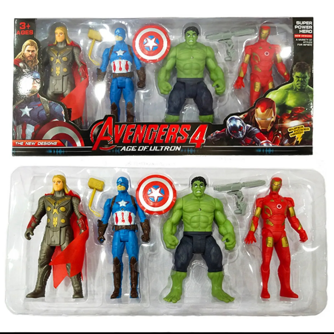 Pack Of 4 Avengers 4 Super Power Hero Figures Set Hulk, Thor, Iron Man & American Captain
